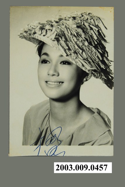 香港女明星方盈的黑白時裝照,上有其簽名。