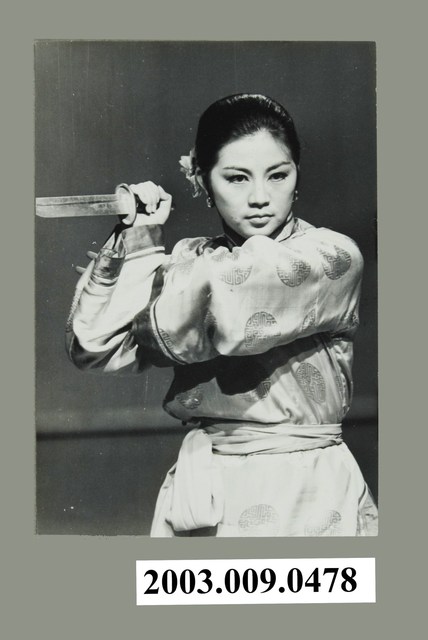 臺灣女演員王滿嬌的黑白古裝劇照。 王滿嬌1943年出生新竹,曾就讀國立藝專影劇科表演組,1960年因參選中國小姐獲選,開始踏入電影圈,在臺語片盛行的1960年代演出超過百部電影,代表作包括《懷念的播音員》、《內山姑娘》、《大地勇士》等;1967年她還執導了首部臺語片作品──時代喜劇《賣布兄哥大鬧桃花宮》。臺語片逐漸沒落之後,王滿嬌轉戰電視圈,演出「西螺七劍」、「保鑣」等多部連續劇,十分活躍於電視圈。