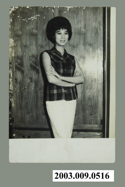 香港女明星凌波的黑白時裝照。 凌波因1963年演出邵氏公司出品、李翰祥執導的黃梅調電影《梁山伯與祝英台》而爆紅,電影原本在香港上映時反應平平,但卻深受臺灣觀眾熱烈喜愛,凌波來臺時甚至造成萬人空巷的盛大場面。凌波也因在該片反串飾演男主角梁山伯,令她獲得第二屆金馬獎「最佳演員特別獎」。據稱當年只要關於她的劇照、海報、雜誌等平面媒體報導,銷量都出奇之好,也因此關於她的照片藏品極多。