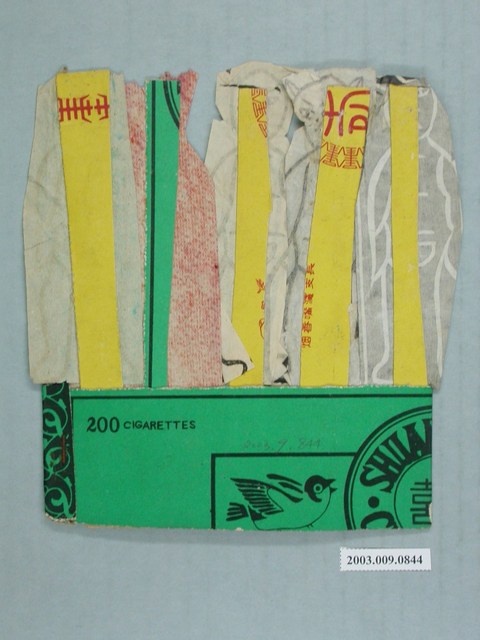 本件五鬼版印紙偶採五個一組,為民間制解法事中使用。由右至左排列之青、紅、黃、白四鬼,分別以墨色列印在淺綠、紅、黃、白色紙張上,最左側之黑色鬼則將鬼身以墨色列印在白紙上,以預留之白色為線條。印製後再就外型加以約略剪裁而成。五鬼之背後以卡紙支撐身軀,一起黏貼於底座的卡紙上而成為一整排。每位鬼皆作頭長犄角、上身赤裸形貌。
