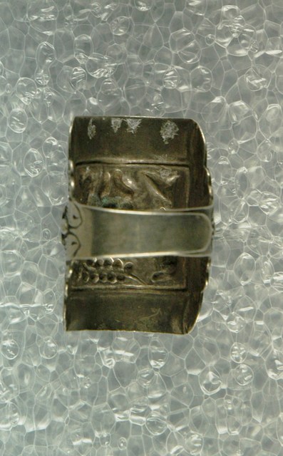 本文物為老人與孩童戒指,其內有一蓄有鬍子的老人,及在樹下蹲著並且綁有兩側髮髻童子之雕刻。臺灣原住民及漢人皆會帶配飾,而就漢人而言女性使用飾品的比率比男性高。傳統社會中女性配戴的首飾,代表家族的財富及地位,尤其在嫁娶之時,以金銀飾品作為聘禮也十分常見。在臺灣貧者在嫁娶至少要有銀簪,而富者並無限制。因此,飾品不但反映當時社會的審美觀,也是女性及其背後家族之社會地位之象徵。