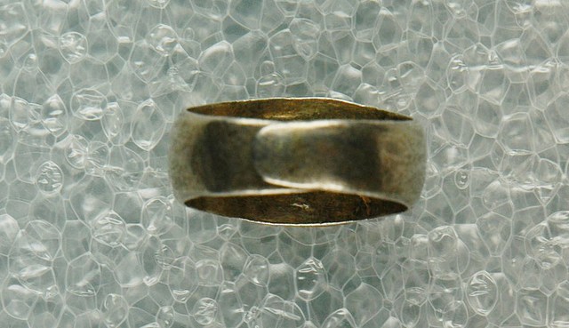本文物為富春金屬戒指,上有富春字樣的浮雕。臺灣原住民及漢人皆會帶配飾,而就漢人而言女性使用飾品的比率比男性高。傳統社會中女性配戴的首飾,代表家族的財富及地位,尤其在嫁娶之時,以金銀飾品作為聘禮也十分常見。在臺灣貧者在嫁娶至少要有銀簪,而富者並無限制。因此,飾品不但反映當時社會的審美觀,也是女性及其背後家族之社會地位之象徵。