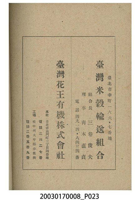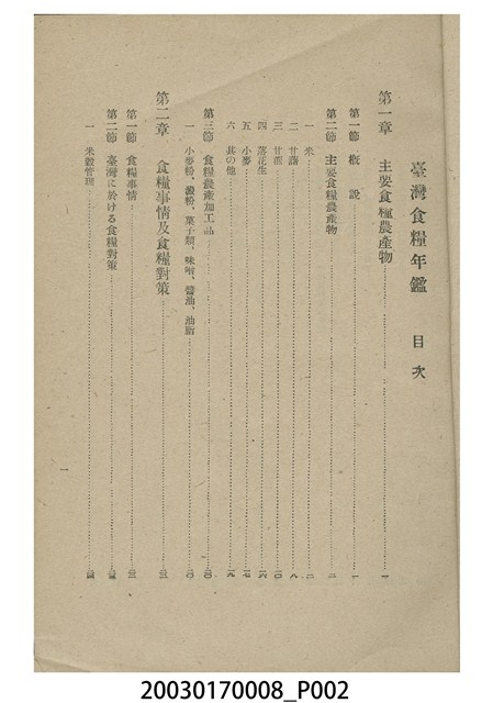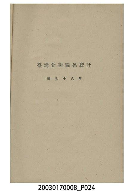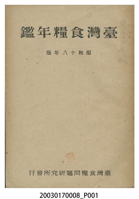 ::: 臺灣食糧問題研究所發行《臺灣食糧年鑑(昭和十八年版)》