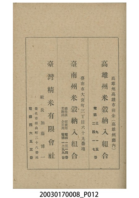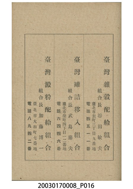 糧食作物、配給統制、食糧局、臺灣米穀納入協會