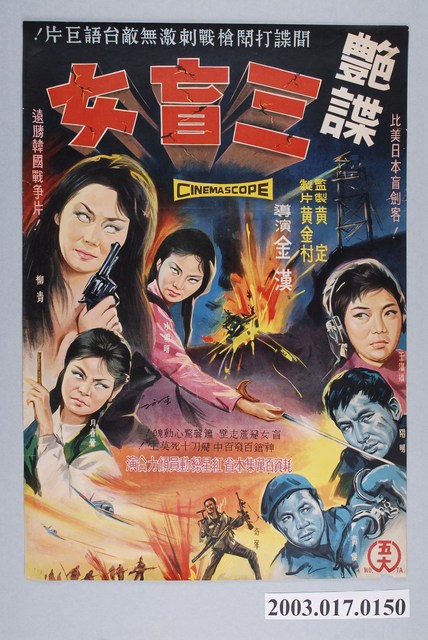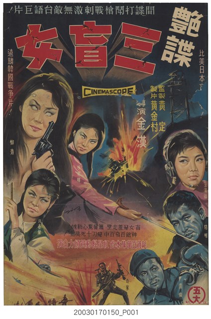 《艷諜三盲女》為1966年上映的臺語諜報片,由五大電影公司出品,金漢執導,小明明、柳青、月春鶯等主演,海報上的文案標明:「間諜打鬥槍戰刺激無敵台語巨片!」、「耗資百萬集本省紅星總動員傾力合演」等。