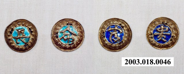 本文物為長命富貴琺瑯1組,皆為一圓形中寫有一字,上方有圍繞成一個圈的螺旋紋,其內皆塗有琺瑯,並各寫有「長」、「命」、「富」、「貴」等字,應為裝飾用的飾品。臺灣原住民及漢人皆會帶配飾,而就漢人而言女性使用飾品的比率比男性高。傳統社會中女性配戴的首飾,代表家族的財富及地位,尤其在嫁娶之時,以金銀飾品作為聘禮也十分常見。因此,飾品不但反映當時社會的審美觀,也是女性及其背後家族之社會地位之象徵。