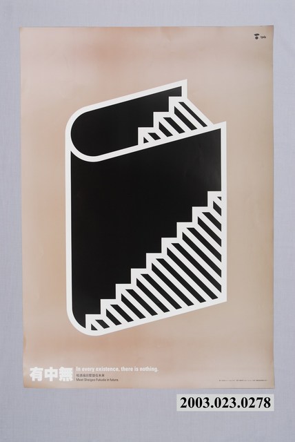 1.本件為陳俊良設計「有中無」海報,曾在2002年「海報大師在臺灣-福田繁雄」展覽中展出。2.陳俊良,臺灣藝術大學創意產業設計研究所博士。福田繁雄(1932~2009),與Gunter Rambow、Seymour Chwast,齊為世界三大平面設計師,曾被譽為「五位一體的視覺創意大師」。3.海報是由文字、造型與色彩所組成,是傳達一個意念整體形象的重要表徵。