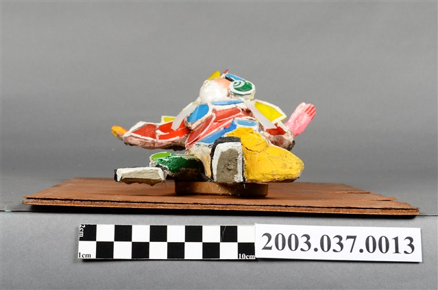 3.據陳乞徒弟陳世仁表示,當時的剪黏人物是由陳乞做粗坯,再由當學徒的陳世仁進行玻璃黏貼、上色等「仕上げ」表面處理的工作。