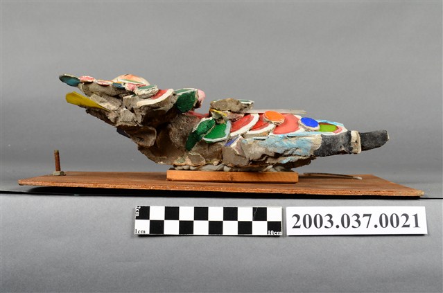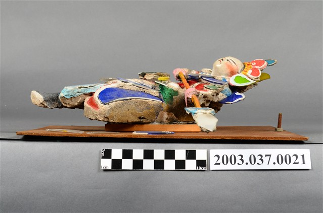 3.據陳乞徒弟陳世仁表示,當時的剪黏人物是由陳乞做粗坯,再由當學徒的陳世仁進行玻璃黏貼、上色等「仕上げ」表面處理的工作。