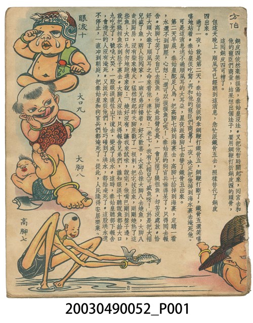 1. 本物件為騎馬釘裝書籍,書籍狀態有破損、折角及磨損等情形,其封面已不存,內文印刷為正體中文,搭配插圖說明故事內容。尤其印刷及內文風格猜測應為《兒童樂園》系列的刊物,但因封面以不存故無法得知是哪一期刊物。