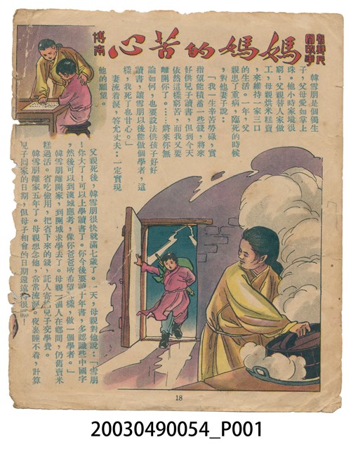 1.本件為「貪心的哥哥故事散頁」,此件為散頁,表面泛黃,四緣多處破損,表面起皺。據畫風與排版推測是從《兒童樂園》脫落。