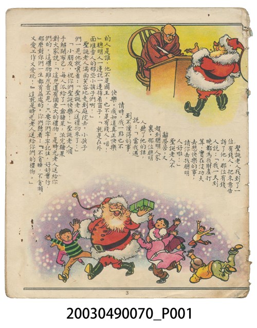 1. 本物件為騎馬釘裝書籍,書籍狀態有破損、折角及磨損等情形,其封面已不存,內文印刷為正體中文,搭配插圖說明故事內容。尤其印刷及內文風格猜測應為《兒童樂園》系列的刊物,但因封面以不存故無法得知是哪一期刊物。