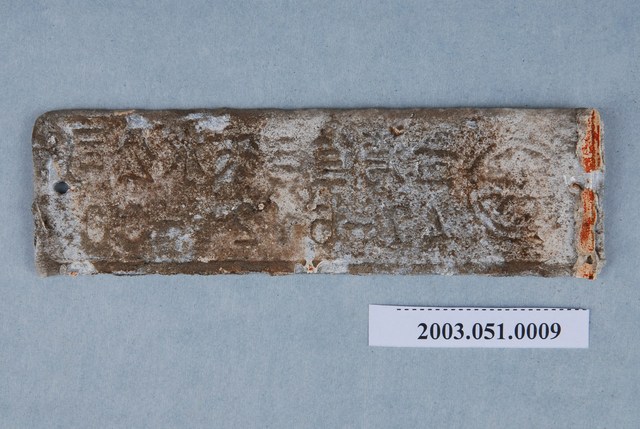 1.本物件為1張金屬製的方型鐵牌,正面有上漆,背面無上漆。鐵牌的左右2側各打了1個圓形小洞。正面推測為藍色底漆,上有白色物質附著,亦推測為白色底漆或是污漬,邊框及文字採鑄刻方式,邊框無上底漆,左邊有臺灣省自來水公司的標誌,右邊分成上下2排,上面這排寫著「臺灣省自來水公司」,下面這邊則為「47-6121-00」,標誌及文字皆為藍色漆,但部分字體鏽蝕或沾上白色物質,致使模糊不清;背面保留邊框、標誌及文字的鑄刻痕跡,金屬原色無上漆,但整面皆已生鏽,只有部份看到金屬色,右邊邊框的金屬鏽色比其它生鏽色再偏橘色調些。