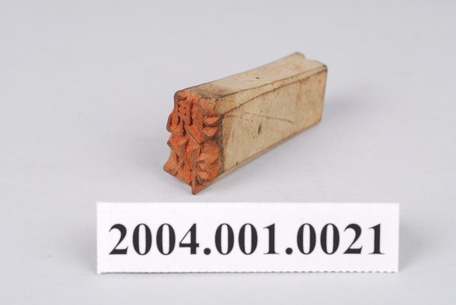 本物件為現枚字樣木製印章,其外觀大致為梯形,上窄下寬。該印章刻有「現枚」字樣,直式排版。雕刻方式為陽刻,有使用痕跡。