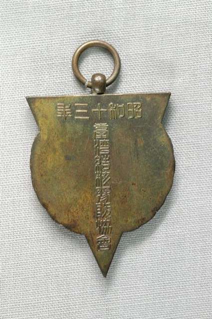1.此物件為昭和30年(即民國44年,1955)臺灣結核豫防協會所發行之紀念章,為一金屬製品,紀念章形狀為一倒三角形以及纏繞於三角形上的桂冠,紀念章的中間刻有一賞字,背面則刻有昭和30年台灣結核預防協會。 2.紀念章是為了值得紀念的事蹟或是為了緬懷或是為了感謝某人或某單位之貢獻所用於贈與收藏的一種飾品。