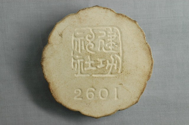 1.本件建功神社圓形菊花紋瓷紙鎮的正面有上釉,中間有帶孔的紐,穿上數條紅繩綁死結。底部未上釉,中間有「建功神社」字樣的方形章,下方有數字「2601」,代表「皇紀2601年」即昭和16年(1941)。2.建功神社是臺灣總督府於昭和3年(1928)在今天的臺北市南海路的國立教育資料館及南海學園(當時為苗圃)所興建的神社,用以祭祀為日本犧牲的日本與臺灣烈士。