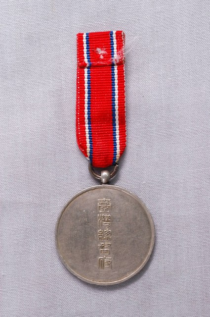 此為一紀念章,附有紅、藍、白三色相間的綬帶,徽章一面寫有「大正十四年國勢調查」的字樣,並以日本的兩種國花:「櫻花」以及代表日本天皇的「菊花」包圍,另一面則寫有臺灣總督府字樣。此為大正十四年(1925年)的國勢調查紀念章。 此件所提及的「國勢調查」為日本於1920年開始舉行的全國人口普查,並以「國勢調查」一詞沿用至今。日本原先準備於1905年準備進行首次人口普查,但日本本土的中央政府並不積極,且日俄戰爭爆發,因此僅有臺灣總督府對臺灣進行人口普查。直到1920年日本才舉行第一次對領有國土的全面調查,其中包含日本本土、朝鮮(韓國)、臺灣,從此之後便每隔五年進行一次國勢調查,且分為每十年(1920、1930、1940等)的大規模調查,以及每十年(1925、1935、1945等)的簡易調查。 日治時期的臺灣人口普查始於1905年10月1 日的「臨時臺灣戶口調查」,之後直至1915年才又舉行人口普查,另外針對原住民的人口普查則至1925年才正式開始。而1920年的首次調查中,其調查內容大多與日本本土相同,但多出數項臺灣專有的調查項目,如:「種族」、「臺灣語言的能力」、「日語能力」、「日語假名讀寫能力」、「鴉片」、「纏足」等。(富田哲。2012。4-5