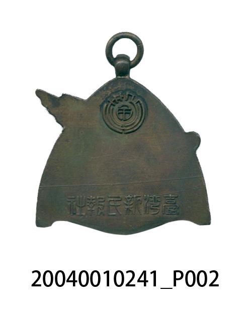 1.本件徽章略呈三角形,正面雕刻一隻鷹,上寫一賞字,背面上方有一民字的符號,下方寫臺灣新民報社。2.紀念章的製作,是為了表示對某一事件的產生之思念不忘。《臺灣新民報》的前身為《臺灣民報》週刊,從1930年3月29日的第306期起,改稱為《臺灣新民報》,並在1932年4月15日,開始發行日刊《臺灣新民報》。臺灣新民報的內容是報導重於評論,站在臺人的立場從事報導,尤其致力於糾正各日系報紙的歪曲事實與袒護日人之言論。