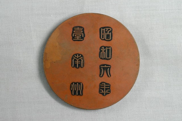 本件為昭和6年(1931)臺南州表揚紀念徽章,金屬材質,圓形。正面有櫻花外形和月桂葉圖樣,並刻有「表彰」字樣,背面則刻有「昭和六年」、「臺南州」字樣。