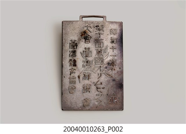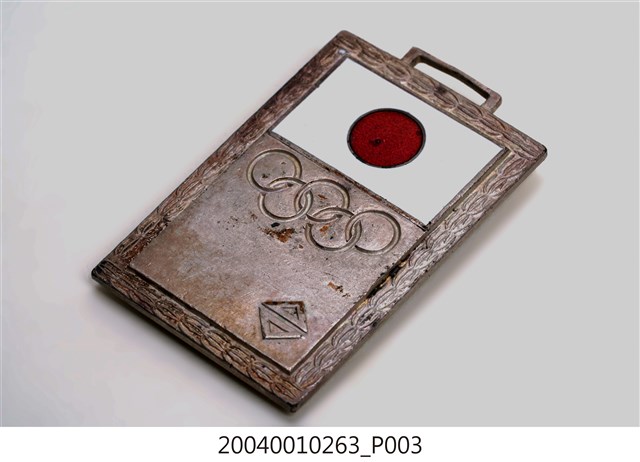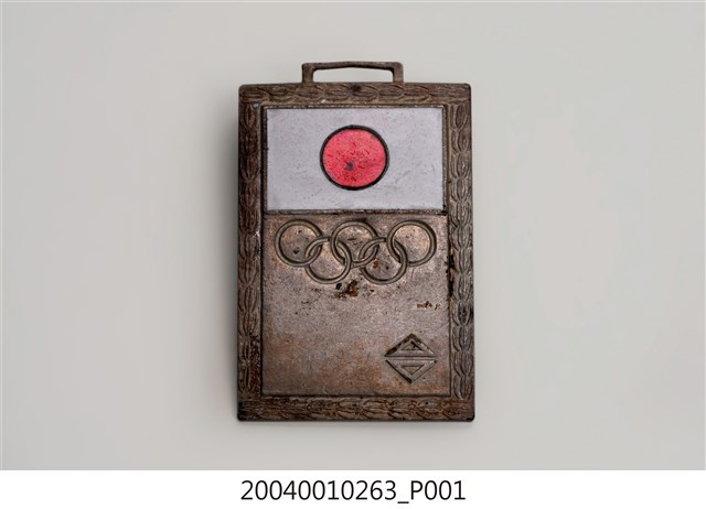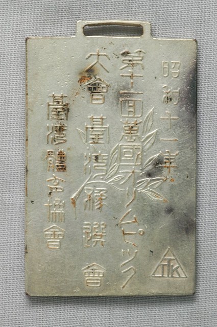 臺灣體育協會舉辦1936年柏林奧運臺灣預選賽。正面有日本國旗與奧運會徽。背面的「TTK」為臺灣體育協會的日文之英文拼字的縮寫。
