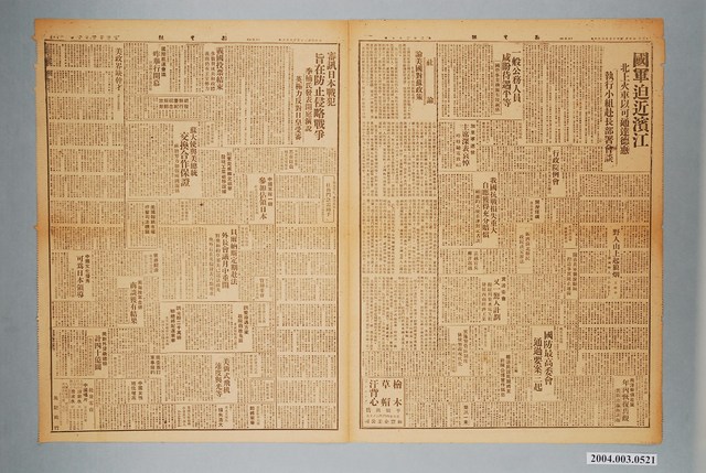 此為一紙質報紙,以黑色字體印刷,本物件為1946年(民國35年)6月6日發行之《臺灣新生報》第225號,此物件採雙面印刷,共計五版,此處為其第一至四版,內容計有〈臺灣省行政長官公署教育處公告〉(處長范壽康)、〈交通部臺灣郵電管理局公告:第七號〉(局長陳壽年)、〈行政長官公署交通處鐵路管理委員會招用熟練電機通信工手公告〉、〈臺灣省交通處鐵路管理委員會工程招標公告〉、〈善後救濟總署臺灣分署分配奶粉煉乳公告〉(署長錢宗起)、〈善後救濟總署臺灣分署配給粉牛乳煉牛乳公告〉(署長錢宗起)、〈陸軍第一百零七師政治部啟事〉、〈國軍迫近濱江 北上火車以可通達德惠 執行小組赴長部屬會談〉、〈一般公務人員咸盼待遇平等 國營事業機關有優越感〉、〈行政院例會通過處理在外臺胞國籍辦法〉、〈加里寧逝世 主席深表哀悼 昨特馳電致唁〉、〈野人山上起狼烟 滇西野人山小景 〉(王時中)、〈南洋華僑產業 年內恢復舊觀 僑領連瀛洲談稱〉、〈我國抗戰損失重大 自應獲得充分賠償 顧維鈞大使在津對記者談〉、〈資原委會又一驚人計畫 擬建用東水電工程發展西南經濟工業〉、〈國防最高委會通過要案三起〉、〈褚逆民誼死期將至,對陳公博曾作狐悲〉、〈實施警管區制度 係使警政現代化――內政長張厲生談稱〉、〈社論:論美國對蘇政策〉、〈審訊日本戰犯旨在防止侵略戰爭 季楠氏發表開庭演說 英極力反對日黃受審〉、〈義國投票結束 多數贊成共和政體 義南仍有王室勢力〉、〈國際航運會議昨舉行開幕 討論海員工資等問題〉、〈朝鮮慶祝解放,發行紀念郵票〉、〈蘇大使與美總統交換合作保證〉、〈鮑萊完成韓北視察 發現工業被移證據〉、〈中國軍隊一師參加佔領日本――駐地為名古屋及本州 美駐日軍僅十伍萬人 〉、〈美國報紙有權抨擊司法機關〉、〈貝爾納斯定期赴法外長會議月中重開 對奧合約草案美已送法蘇英 奧外長在英倫發表六點要求〉、〈調整待遇方案 政院藉故拖延 重慶地院員工罷工〉、〈調羹粉二千萬磅 聯總將配運來華 英美加建議分函各國 請加入緊急糧食委會〉、〈美新式飛机,速度與光等〉、〈中國文化優秀 可為日本領導 日本報界對國人呼籲〉、〈美對外貸款總額計四十億圓 梅耶汝任國際建設銀行長〉、〈社論:米の對蘇政策論ず〉、〈陳誠參謀總長軍事報告(上)還軍於國,百年大計 日橋は百餘萬人を遣送〉、〈米國の海運界政府と對立 商船罷業に 對應 豫備役海軍々人を召集〉、〈戰犯の事實は明瞭 全被告有罪 キ檢事痛論〉、〈農村文化工作促進 合作農場の準備を行ふ〉、〈上海への送金為替 華南、商工兩行で取扱ふ〉、〈聽音器はもう古い 米國に音速の快機出現〉、〈野球,高雄一中に凱歌 打擊賞は四割七分の盧君へ〉、〈肉彈相搏つ熱戰 ラグビー建國中準決勝に勝利〉、〈臺南,兵士の亂暴〉等。 《臺灣新生報》創刊於1945年10月,是戰後初期由臺灣省行政長官公署宣傳委員會所經營的官方報刊,其前身為1944年,臺灣總督府整併島內六間報社所發行的《臺灣新報》。《臺灣新生報》最初由李萬居主導,雖屬官營報紙,但仍忠實反應民意,在二二八事件前夕,官民衝突漸深之際,新生報屢次發表告誡官方約束權力之言論。二二八事件之後,李萬居職權遭架空,辦報人員亦多被肅清,《臺灣新生報》成為更加偏向政府的報紙。 中華民國政府於1945年接收臺灣之始,即派出「中央宣傳部」整頓臺灣報業,撤廢日治時期管控報紙的許可制度,改為登記申請制,管制的解除使得戰後初期的辦報風氣大盛。後由於民間報刊對於接收後的行政長官公署多有批判,於是在二二八事件之後,政府開始嚴格控管報紙,在戒嚴開始後更以資源節約、端正文化等理由施行「報禁」。(王天濱,2002。154-170)