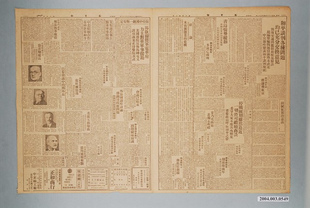 此為一紙質報紙,以黑色字體印刷,本物件為1946年(民國35年)6月21日發行之《臺灣新生報》第240號,此物件為單張雙面,共四版,內容計有〈和平談判各種問題,均已充分交換意見,恢復交通問題似尚較易解決,統編整編問題目前仍未決定,中宣部昨發表和平談判現狀〉、〈青島情勢緩和,外圍共軍紛向即墨敗退,普查共軍似圖進襲大同〉、〈蘇北各縣長多流亡揚州〉、〈鮑萊調查團離瀋飛東京〉、〈共軍違反停戰協定,當局已提嚴重抗議〉、〈社論:本省新聞業的危機〉、〈田賦征實的意義〉、〈停戰限期雖然迫近,一切仍可繼續商談,希望大家不應兵戎相見,褚參政員呼籲和平之聲〉、〈甘乃光出席菲獨立典禮〉、〈國營紡織業期限僅兩年,所獲實利均解國庫〉、〈國府明令發表新疆省委人選〉、〈魏道明否認將出任新職〉、〈李惟果昨飛抵瀋陽觀察東北宣傳工作〉、〈馬歇爾將軍電華府力主對華軍事援助,美國務院宣佈馬帥電文該項議案正待參院表決〉、〈艾契遜氏報告對華軍事援助〉、〈中美繼續合作有裨世界和平〉、〈聯合國原子委員一致擁護美建議〉、〈法臨時政府總統皮杜爾當選〉、〈杜魯門總統延長對華租借〉、〈美復興銀公司貸款期延長〉、〈巴黎會議中的四外長〉、〈美退伍軍人委會會議已結束〉、〈外長會議昨搞論佛朗哥政權問題,對義和約經濟部份難協議〉、〈聯合國前日舉行國際健康會議〉、〈美教育影片管理會擬訂電化教育計畫〉、〈美造漁船贈送中國〉、〈日貴族院議長德川國順被黜〉、〈美蘇互換樂曲〉、〈協議の速決を望む,政府は即に重大讓步許容,和平問題 彭部長と一問一答〉、〈制服の女給出現?チツプの代りに薪水制〉、〈荷役工員を結集「港埠起卸公會」を組織〉、〈蔣主席に報告電〉、〈ペストに萬全〉、〈南部に海上警報,颱風の被害はまつない〉、〈ブトンと飛んだゾ!〉、〈鼠と蚤の驅除法〉、〈美しい一幅の繪だ,名裁判長に感激の送金〉、〈高雄育英塾開く〉、〈殆んど女性ぽかり〉 等。 《臺灣新生報》創刊於1945年10月,是戰後初期由臺灣省行政長官公署宣傳委員會所經營的官方報刊,其前身為1944年,臺灣總督府整併島內六間報社所發行的《臺灣新報》。《臺灣新生報》最初由李萬居主導,雖屬官營報紙,但仍忠實反應民意,在二二八事件前夕,官民衝突漸深之際,新生報屢次發表告誡官方約束權力之言論。二二八事件之後,李萬居職權遭架空,辦報人員亦多被肅清,《臺灣新生報》成為更加偏向政府的報紙。 中華民國政府於1945年接收臺灣之始,即派出「中央宣傳部」整頓臺灣報業,撤廢日治時期管控報紙的許可制度,改為登記申請制,管制的解除使得戰後初期的辦報風氣大盛。後由於民間報刊對於接收後的行政長官公署多有批判,於是在二二八事件之後,政府開始嚴格控管報紙,在戒嚴開始後更以資源節約、端正文化等理由施行「報禁」。(王天濱,2002。154-170)