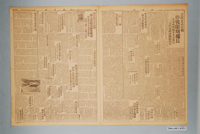 此為一紙質報紙,以黑色字體印刷,本物件為1946年(民國35年)6月22日發行之《臺灣新生報》第241號,此物件為單張雙面,共四版,內容計有〈主席正式宣佈停戰限期延長,有效時間展至本月三十日,三方代表祈求繼續和平〉、〈中共代表表示努力奔赴和平,保證共方軍隊堅守原防〉、〈中共製造恐怖事件,不惜犧牲黨員生命〉、〈財政收支系統法經立院修正通過〉、〈柯克將軍將坐鎮青島,青市長慰問傷兵〉、〈社論:印度政局展望〉、〈政協決議是怎樣破壞的〉、〈資源委會派周茂柏飛往日本調查工業〉、〈夏莊附近共軍擊退怪機兩架掃射柳亭〉、〈鄭介民向中共提嚴重警告,要求懲辦兇手,廢止殺人政策〉、〈太平洋戰前公債,下月起開始兌付〉、〈谷正綱抵泰州撥發急賑欵糧〉、〈田賦繼續征實目的安定物價,內河航權問題正調整中,宋院長答覆各記者詢問〉、〈印席政局又生波瀾,國大黨魁尼赫魯被捕因強進喀什米爾暴動區,孟買十萬工人罷工反抗〉、〈日議會舉行非常會議,日皇促通過新憲草,共黨議員認無意義拒絕參加,日私有武器製造廠撥充賠償〉、〈審訊戰犯問題,遠東國際軍事法庭已通過,以證人陳述書為審問證據〉、〈紐約時報評論東北工業被刼〉、〈美國的新善隣政策〉、〈中國教會大學負責人都生等來華〉、〈杜魯門報告聯總工作,運華物資共達六十餘萬噸,內包含糧食醫藥紡織品等〉、〈麥帥接見日女議員〉、〈麥帥總部派員來華調查科學設備需要,以便決定移動日方賠償〉、〈梵蒂岡和莫斯科之間〉、〈對義大利合約問題四外長獲兩項協議,義法疆界問題亦曾討論〉、〈法反共群眾示威襲擊共黨總部〉、〈暹僑胞募款百萬充教育基金〉、〈聯合國糧農機構擴大漁業組工作〉、〈英新座談會檢討黨務問題〉、〈東京公務員五千人要求加薪提出恫懗〉、〈蘇代表提出主張設國際協議〉、〈英決以檳榔嶼闢為自由港,殖民部大臣在下院稱〉、〈美海部請眾院通過對華軍事援助法案〉、〈雙方讓步により圓滿解決を希望,國內問題に就いて宋院長記者に答ふ〉、〈又もぺスト患一名,福州から淡水に歸來〉、〈新竹市にも立寄る,戎克船は舊港に入港〉、〈財政難に喘く監獄,營養失調で四人斃る,根本的な救濟對策を要望〉、〈卓蘭の芭蕉みのる〉、〈基隆にコレラ再發〉、〈臺灣青年よ起て!悲觀傍觀する勿れ,熱血兄弟北平より激勵〉、〈何が原因?ぺストの侵入,檢疫所有名無實か,陣容の強化擴充望まる〉、〈接收農具を農民へ,一五七師の處置に感激〉、〈預算案を慎重審議,臺南縣參議會臨時大會〉、〈正米市場近く復活〉、〈甘藷の增產へ,臺灣卅一號外五品種〉、〈造林適性を調查,開墾者は請願書提出せよ〉、〈煤炭問題更に陳情,無效になれば廢坑,礦區權使用者大會で決議〉、〈日人財產を買收,不德公務員に嚴罰下す〉、〈閉鎖の儘宙ぶらり,迷惑なの患者です〉等。 《臺灣新生報》創刊於1945年10月,是戰後初期由臺灣省行政長官公署宣傳委員會所經營的官方報刊,其前身為1944年,臺灣總督府整併島內六間報社所發行的《臺灣新報》。《臺灣新生報》最初由李萬居主導,雖屬官營報紙,但仍忠實反應民意,在二二八事件前夕,官民衝突漸深之際,新生報屢次發表告誡官方約束權力之言論。二二八事件之後,李萬居職權遭架空,辦報人員亦多被肅清,《臺灣新生報》成為更加偏向政府的報紙。 中華民國政府於1945年接收臺灣之始,即派出「中央宣傳部」整頓臺灣報業,撤廢日治時期管控報紙的許可制度,改為登記申請制,管制的解除使得戰後初期的辦報風氣大盛。後由於民間報刊對於接收後的行政長官公署多有批判,於是在二二八事件之後,政府開始嚴格控管報紙,在戒嚴開始後更以資源節約、端正文化等理由施行「報禁」。(王天濱,2002。154-170)
