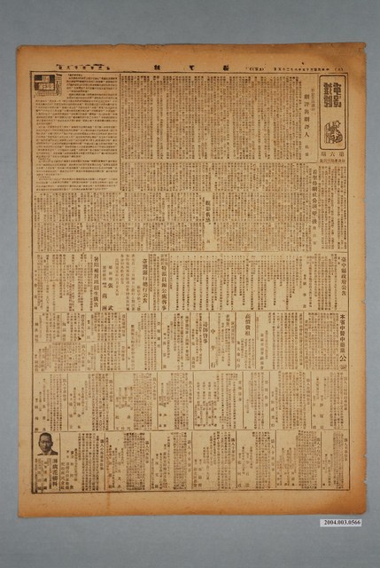 此為一紙質報紙,以黑色字體印刷,本物件為1946年(民國35年)6月29日發行之《臺灣新生報》第248號,此物件為單張單面,共二版,內容計有〈全省教育行政會議昨午正式圓滿閉幕,今後教育可望迅速推進〉、〈省農會積極展開合作社復原工作,七月五日擬開籌備委會〉、〈臺灣結核病研究所,教授等十八人分工合作〉、〈教育會議參加人員之感想〉、〈氣象局對時電話特備「二三四五」號〉、〈政府與煤鑛公會聯合組織公斷機構,國營礦區一部擬招人承租〉、〈田賦徵實尚有問題,臺南代表北上陳情〉、〈士林柳川商會匿存大批日海電氣材料〉、〈人壽產物保險開始,原有獎約限期申請驗證,一經驗明加印繼續生效〉、〈高雄推行藝術音樂擬籌經費五十萬元〉、〈市立醫院昨舉行籌備會〉、〈影劇常識講話,劇評與劇評人〉(杜雲)、〈看聖烽劇社公演「壁」後〉(唐山客)、〈觀影偶感〉(昌)等。 《臺灣新生報》創刊於1945年10月,是戰後初期由臺灣省行政長官公署宣傳委員會所經營的官方報刊,其前身為1944年,臺灣總督府整併島內六間報社所發行的《臺灣新報》。《臺灣新生報》最初由李萬居主導,雖屬官營報紙,但仍忠實反應民意,在二二八事件前夕,官民衝突漸深之際,新生報屢次發表告誡官方約束權力之言論。二二八事件之後,李萬居職權遭架空,辦報人員亦多被肅清,《臺灣新生報》成為更加偏向政府的報紙。 中華民國政府於1945年接收臺灣之始,即派出「中央宣傳部」整頓臺灣報業,撤廢日治時期管控報紙的許可制度,改為登記申請制,管制的解除使得戰後初期的辦報風氣大盛。後由於民間報刊對於接收後的行政長官公署多有批判,於是在二二八事件之後,政府開始嚴格控管報紙,在戒嚴開始後更以資源節約、端正文化等理由施行「報禁」。(王天濱,2002。154-170)