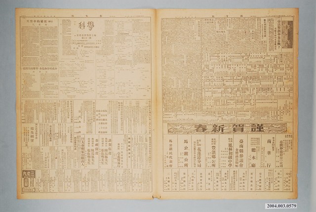 此為一紙質報紙,以黑色字體印刷,本物件為1947年(民國36年)1月9日發行之《臺灣新生報》第442號,此物件為單張雙面,共四版,內容計有〈不動產取得稅撤銷,本月份起征收契稅〉、〈臺中南屯等鄉併入市區問題,市府正準備接收工作〉、〈大林機場倉庫起火原因待查,焚燒炮彈被服數目可觀〉、〈新竹縣民教館募捐賑款萬餘元〉、〈臺南市警局成立警務協進會〉、〈福建省經濟復興方案〉、〈彰化市區今年修建工作經費核定百萬元〉、〈私娼正積極取締中,農戶登記爭執至甚〉、〈臺法貨幣率放長歟?有關方面均未發表意見〉、〈彰化糖廠修復完竣,決定自本年十月起開工〉、〈本省糖業與甘蔗〉(張有輩)、〈天空中的秘密〉(王家儒)、〈臺灣茶的單寧.水色和茶味成分〉(陳發清)、〈臺灣省行政長官公署工礦處公告〉、〈國防部第六廳招考電訊技術人員廣告〉、〈臺灣省日產處理委員會臺北縣分會日產房屋招標公告〉、〈臺北市政府公告〉、〈財政部臺北關蘇澳支關標售處結私貨公告〉、〈財政部臺北關稅務司公署佈告〉、〈臺灣省專賣局標售疏散房屋公告〉、〈空軍 第三十地勤中隊第三分隊標賣房屋公告〉、〈臺灣工礦企業股份有限公司籌備處招商承製木器通告〉、〈華南商業銀行籌備處招考行員通告〉、〈行政長官公署交通處高雄港務局工程招標公告〉、〈嘉義自來水管理處公告〉、〈國營招商局臺北分局船期公告〉等。 《臺灣新生報》創刊於1945年10月,是戰後初期由臺灣省行政長官公署宣傳委員會所經營的官方報刊,其前身為1944年,臺灣總督府整併島內六間報社所發行的《臺灣新報》。《臺灣新生報》最初由李萬居主導,雖屬官營報紙,但仍忠實反應民意,在二二八事件前夕,官民衝突漸深之際,新生報屢次發表告誡官方約束權力之言論。二二八事件之後,李萬居職權遭架空,辦報人員亦多被肅清,《臺灣新生報》成為更加偏向政府的報紙。 中華民國政府於1945年接收臺灣之始,即派出「中央宣傳部」整頓臺灣報業,撤廢日治時期管控報紙的許可制度,改為登記申請制,管制的解除使得戰後初期的辦報風氣大盛。後由於民間報刊對於接收後的行政長官公署多有批判,於是在二二八事件之後,政府開始嚴格控管報紙,在戒嚴開始後更以資源節約、端正文化等理由施行「報禁」。(王天濱,2002。154-170)