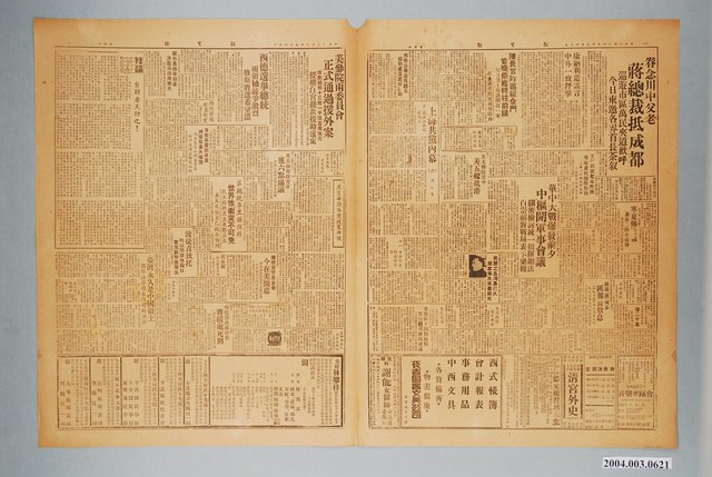 此為一紙質報紙,以黑色字體印刷,本物件為1949年(民國38年)9月13日發行之《臺灣新生報》第1407號,此物件為單張雙面,共四版,內容計有〈眷念川中父老,蔣總裁抵成都,巡遊市區萬民夾道歡呼,今日柬邀各界首長茶敘〉、〈康納利造謠言,中外一致抨擊〉、〈陳長官昨巡視金門,當晚乘艦轉往前線,紀念週上強調閩臺一家,桂永清亦抵廈視察防務〉、〈寧夏傳捷報,聶匪二師全就殲〉、〈華中大戰爆發前夕,中樞開軍事會議縝密檢討統一指揮辦法,白崇禧對戰局表示樂觀〉、〈王叔銘親駕轟炸機飛臨京杭指揮作戰〉、〈英美聯防聲中,美五艦抵港〉、〈西南公署派員赴昆協助盧漢處理滇局〉、〈上海共黨內幕(六)〉(傅紅蓼)、〈匪區「匪」何多,匪報長嘆息〉、〈美麗之島渴慕已久,羅家倫氏來臺觀光〉、〈重慶區十四個縣局舉行剿匪聯防會議〉、〈川西豐收〉、〈美參院兩委員會正式通過援外案,援款總額十三億一千四百萬美元,授權白宮撥款援助遠東〉、〈西德選舉總統,兩領袖競爭激烈,修斯膺選希望濃〉、〈蘇外長維辛斯基決赴美出席聯大〉、〈日檢事署對共黨將採取重大措施,調查罪行如確屬實在即予逮捕並解散組織〉、〈英美加財政會談獲六點協議〉、〈展望華府外交政策會議〉、〈菲總統季里諾預料世界性衝突不可免,民主與共產主義難並立,美五眾議員已抵菲訪問〉、〈社論:自助者天助之!〉、〈國際貨幣基金會今在美開幕〉〈波捷責狄托均以間諜作藉口,實為蘇聯應聲虫〉、〈伏希爾訪日國會領袖〉、〈印尼待決政治犯將緩處死刑〉、〈臺灣永久是中國領土,國際法學權威作精闢分析〉、〈從火堆理出生的鳳凰,新生的綠島〉(朱楓)、〈苗栗水利委員會擬建後龍溪貯水池,初步勘測作業已完成,開工興築約需兩年以上〉、〈臺南縣農會與合作社進行合併改組工作〉、〈山城一盛會〉、〈高雄學童大歡喜〉、〈新竹縣政府舉辦綠肥增產競賽〉、〈九三在澎湖〉等。 《臺灣新生報》創刊於1945年10月,是戰後初期由臺灣省行政長官公署宣傳委員會所經營的官方報刊,其前身為1944年,臺灣總督府整併島內六間報社所發行的《臺灣新報》。《臺灣新生報》最初由李萬居主導,雖屬官營報紙,但仍忠實反應民意,在二二八事件前夕,官民衝突漸深之際,新生報屢次發表告誡官方約束權力之言論。二二八事件之後,李萬居職權遭架空,辦報人員亦多被肅清,《臺灣新生報》成為更加偏向政府的報紙。 中華民國政府於1945年接收臺灣之始,即派出「中央宣傳部」整頓臺灣報業,撤廢日治時期管控報紙的許可制度,改為登記申請制,管制的解除使得戰後初期的辦報風氣大盛。後由於民間報刊對於接收後的行政長官公署多有批判,於是在二二八事件之後,政府開始嚴格控管報紙,在戒嚴開始後更以資源節約、端正文化等理由施行「報禁」。(王天濱,2002。154-170)