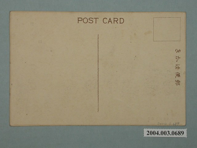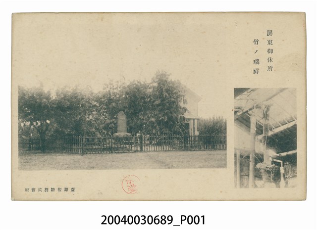 1.本物件為以屏東御休所的瑞竹為主題之明信片,正面為2張黑白照片,右下照片為甘蔗秤重時的場景,畫面中可見1機具將裝成簍的甘蔗吊起,左側照片為屏東御休所的瑞竹,畫面中可見小塊地區被圍起,裡有1株竹子,並立有1石碑,右上有1段文字「屏東御休所竹ノ瑞祥」,左下有1段文字「臺灣製糖株式會社」,下方有1紅色戳印,有「水堂」字樣;背面為空白明信片直式書寫面,以黑色單色印刷,左上處為郵票黏貼處,上方有「郵便はかき」字樣,左側有「POST CARD」字樣。