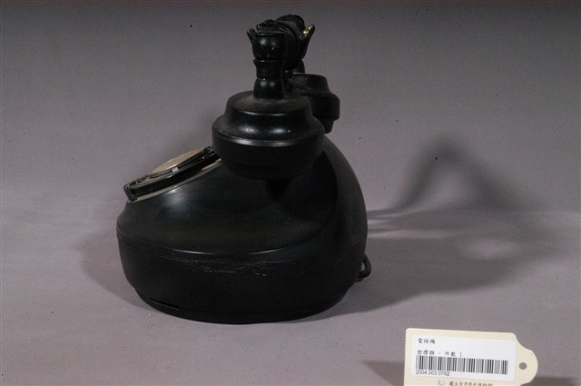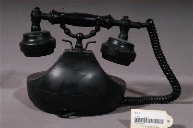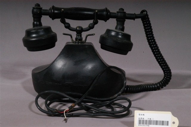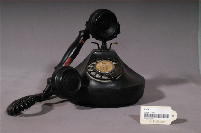 1.本圖之電話機,為桌上型撥號盤式電話機,本機種設計之特色:黑色,聽筒放置於撥號盤後的固定架上,是1931年時的設計,並成為世界普遍採用的設計形式,直到1970年代才被按鈕式電話取代。