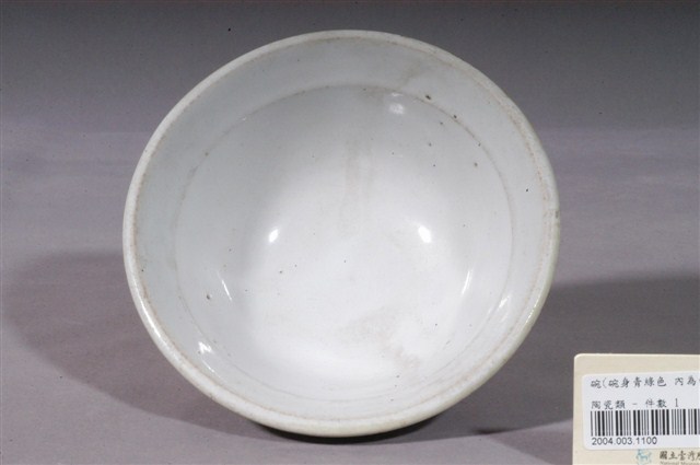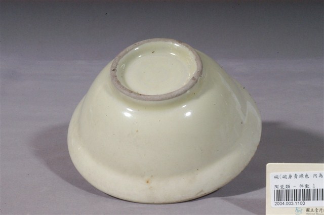 淡青綠釉彩碗造形呈敞口、帶折沿、弧腹、帶圈足碗。圈足露胎,呈色偏灰,胎質細緻,未帶雜質或沾黏窯沙,胎壁較厚實。器表有些許氣孔。內壁施罩白釉,釉色潔白。內壁素面無紋,折沿處及口沿處因使用痕跡,皆有些許泛黃及泛灰的情形。外壁則施淡青綠釉,釉色清透溫潤,亦是素面無紋。內壁的白釉相較於外壁的淡青綠釉,光澤感較弱,不似外壁晶透,但透過精巧搭配兩色,內白外青綠,即使無繪製裝飾紋飾或主題紋樣,卻也顯得格外清新雅致。