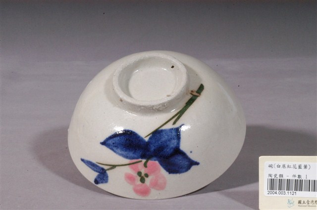 1.青花粉紅彩花卉紋碗敞口、圓弧腹、帶圈足碗。採鏇坯壓模、釉下彩繪之後施釉高溫燒製而成。全器滿釉,以白釉為底,白中帶灰。內器壁素面無紋,外器壁裝飾青花粉紅彩折枝花卉紋,採寫意沒骨畫法繪製而成,釉下彩繪以鈷藍色料作花蕊與葉,粉紅顏料作花瓣,花瓣略有積釉的現象,黛綠顏料作枝幹,筆法細緻,用色濃厚大膽,風格強烈。2.粉紅彩色料,其引進臺灣比釉下青花鈷料年代略晚,但可能日治時期已開始使用。早期碗盤很常只用青花作紋樣裝飾,約民國四十年代開始加入粉紅釉裝飾,使裝飾的色彩有了變化。這樣的裝飾風格風行一時,尤其以鶯歌窯