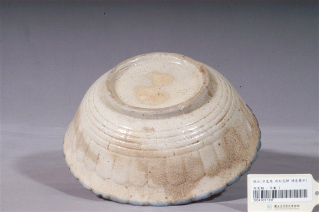 1.這件彩繪花卉紋花口碗,花口外敞、口塗一周淺色青花裝飾,斜弧壁壓印放射狀長橢圓形花瓣,製造如花朵重瓣盛開般的效果。弧壁,至底部漸收,寬圈足。通體施釉,釉面多顆粒與雜質沈澱,開片紋路亦明顯。碗內繪花卉紋,使用粉紅色釉繪出花朵,以綠釉繪作葉片,褐釉作折枝,折枝由中央的花朵往三個方向伸展,構圖簡單而優雅。2. 北投窯的開展起源於日本京都陶藝家九代帶山與兵衛,時間為明治27年(1896年),這不但是北投窯業創立的時間點,也是日本人最早到臺灣開設陶瓷事業的紀錄。起初北投窯以生產日用陶瓷為主,如餐具、茶具、花器、酒器等等,技法則為傳統轆轤拉胚,不過到了二十世紀初期,後續日本經營者引進現代經營技術,也擴大為機械化生產,商品也從飲食器具擴展至瓷磚、電瓷、耐火磚等事業。