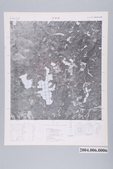 〈中華民國臺灣地區像片基本圖-許厝湖〉,第三版,比例尺五千分一,圖號9418-I-004,林務局農林航空測量所1988年11月21日航空攝影,1990年10月野外調查,1991年6月修測,1991年12月聯合勤務總司令部測量署印刷。