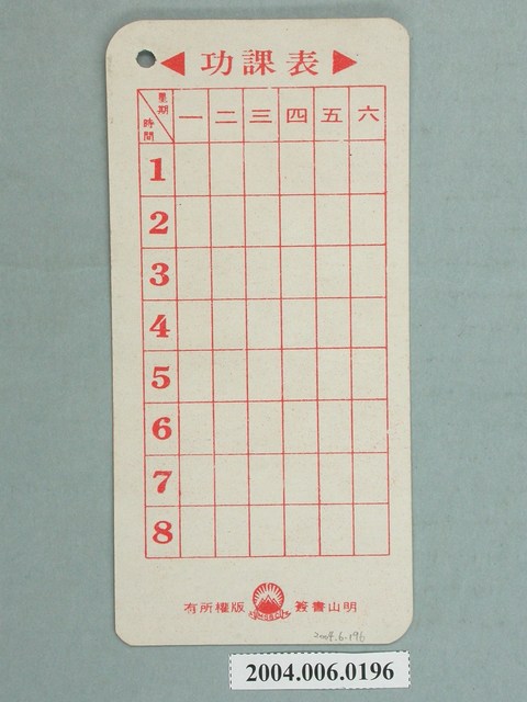 1.香港電影明星鄭佩佩在臺發行中文彩色明星書卡,直式雙面,正面背景藍天綠葉,鄭佩佩身穿紅色上衣,她雖側身卻望向版面左側微笑,目光流轉。下方留白版面則標註「邵氏明星之2,鄭佩佩」,左邊則是邵氏影業的招牌標誌。書卡右上角則有穿一圓孔,書卡狀況尚佳。書卡背面則是用紅色色調製作功課表表格,下方則標註版權為明山書局所有。表面有點泛黃,但大抵良好。2.此書卡為明山書局出版一系列明星書卡,取鄭佩佩1963-1971年活躍時期的照片,曾出演邵氏經典電影《寶蓮燈》、《大醉俠》,並以《大醉俠》一片為華語電影朔造經典「女俠」形象,也出演周星馳經典喜劇《唐伯虎點秋香》、更曾因出演《臥虎藏龍》角逐奧斯卡金像獎獎項。