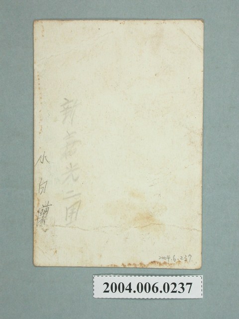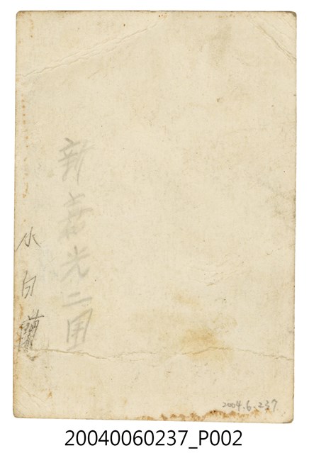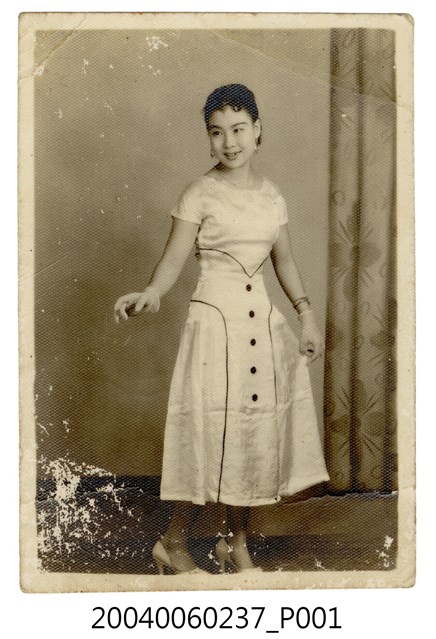1.女演員小白蘭的時裝黑白照,照片正面上為其身著洋裝的全身照,背面另有鉛筆字跡「小白蘭、新嘉光二團」。 2.小白蘭推測可能為1950-1970年代臺灣流行歌舞團的演員。