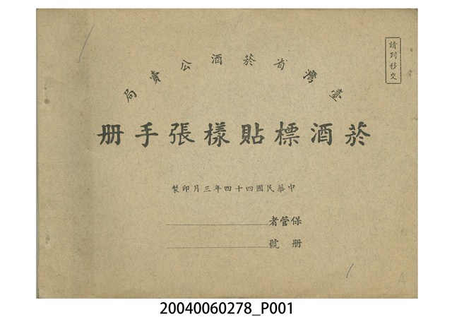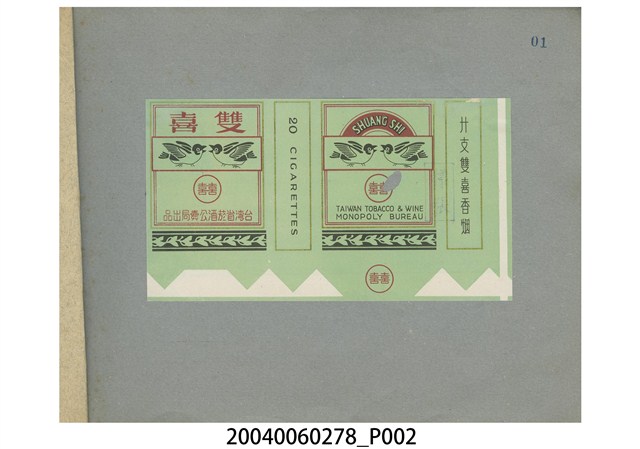 1.本物件為臺灣省菸酒公賣局菸酒標貼樣張手冊,於民國44年3月印製,內有數張香菸包裝的樣張,包含雙喜、檳榔牌、香滴酒等。