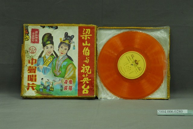 中聲唱片公司出品電影音樂專輯《梁山伯與祝英台》,內容計有編號「CS-5006」~「CS-5009」全套八面、四張10吋塑膠唱片及全套紙封套。封套正面印有主角凌波、樂蒂劇中扮相圖樣,唱片蕊註明「黃梅調歌唱片(凌波、樂蒂主演,凌波主唱)」、「57年7月出版」。