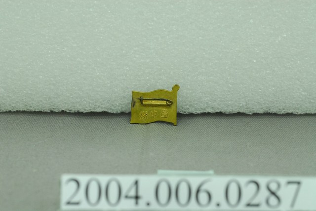本文物為金屬徽章,形狀為一飄揚日本國旗幟,白色底,中間為紅色圓形,上有鑄有四文字「教化委員」。背面鑄有「臺中州」。