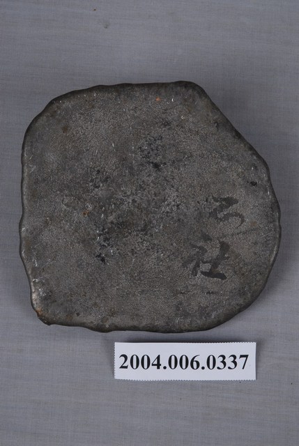 1.本物件為錫料原塊,外觀為鐵灰色,整體形狀為不規則樣貌,表面凹凸不平,部分稜角、孔隙。 2.錫可說是人類所使用的金屬材料中,與鉛、銅一樣擁有久遠歷史的一項材料。由於錫材表面具有類似金、銀等貴金屬的光澤,卻不似金銀般價值高昂。的傳統工藝當中,是一項貼近庶民生活的工藝項目。