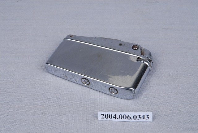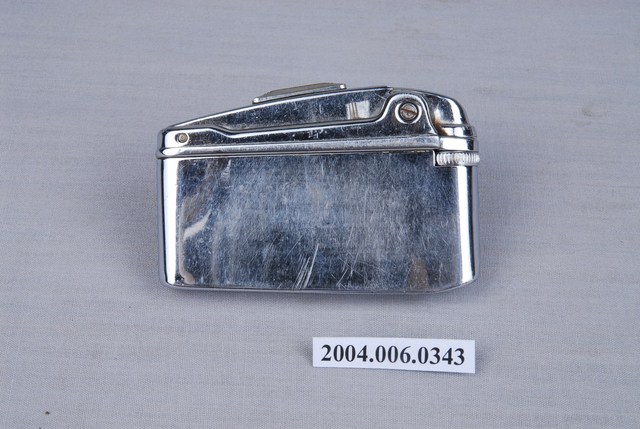 1.煤油打火機,外殼以鋼製成,為前寬後窄的梯形,上蓋造型圓弧,和機身之間以鉸鍊相接,上蓋刻有「MARUMAN」商標,機身單面飾以方形和線條等幾何圖樣,表面有多道刮痕。底部旋鈕轉開可更換棉心和火石。2.煤油打火機可以補充煤油重複使用,運作原理是透過大拇指轉動打火輪,摩擦到內部的火石產生火花,以點燃聚集煤油的棉心產生火焰,可以補充煤油重複使用。