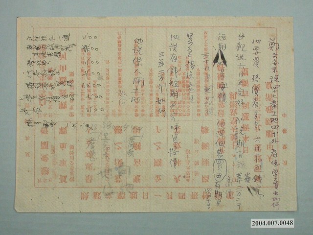 電影傳單為「大甲戲院電影快報」橫幅單張單面紅色印刷,外觀保存尚可,大甲戲院印製。電影快報頁為橫幅《陷陳衝鋒》、《火林救美》等8部電影簡介,並宣傳大甲戲院新設置1953年製大型放影機。左方有「反共抗俄」字樣,右方有「力量集中」字樣。背面為無印刷,有土地買賣、記帳等手寫備忘錄。
