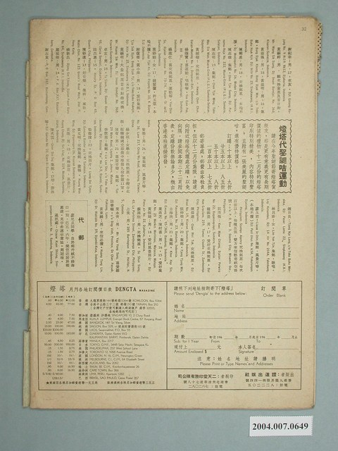 本件《燈塔》月刊第64期,由香港證道出版社在1961年出版,內容以家庭及生活相關知識為主,並設有交友欄,書末也有一些傳道訊息。