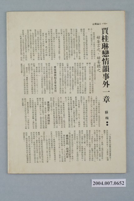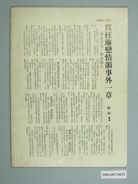 王天濱,2002。臺灣新聞傳播史,臺北,亞太圖書出版社。陳俊斌,2007。雜誌創刊風景:雜誌中的臺灣史,全國新書資訊月刊,105,頁:23-29,國家圖書館。