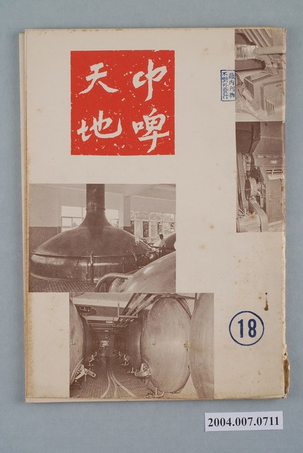 1.本物件為臺灣菸酒公賣局中興啤酒廠編印《中啤天地》第18期,為期刊雜誌,其封面由4張黑白照片組成,皆為廠內之作業設施,其中右上2張大半部分已被裁切,左下2張可見完整照片,左上部分有紅色方形,內有「中啤天地」白色字樣,右下有黑色圓圈內有數字「18」;封底並無圖案與字樣;其內容主要為討論慶祝民國62年10月份各項慶典,另也有企業管理、防治高血壓、勞工與工會組織等文章。