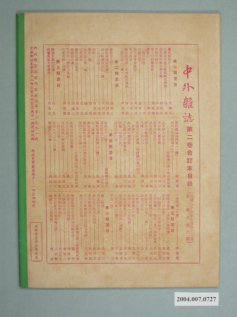 此為一紙質雜誌,此書為中外雜誌社1968年(民國57年)8月出版的《中外雜誌》第4卷第2期八月號,另有別稱《Kaleidoscope》。 《中外雜誌》於1967年由王成聖出版。雜誌在創刊之初,依照其第一卷第一期的創刊號可得知,該誌有意走「文化的、思想的、藝術的路線,使其成為唯美與性靈的綜合刊物」,而發展至現代則轉為「憶舊憶往」的風格。內容龐雜,再周道濟的〈中外雜誌創刊十週年〉一文中提及:「有養生之道,有風流豔史,有政壇祕聞,有各地風光,有將軍生涯,有學府佳話,有梨園長短,有體育舊事,有滄桑內幕,而有關國民革命及抗日戰爭之記載,更是特別豐富」 臺灣的雜誌發展在1960年代時期,由於經濟成長的關係,因而大量雜誌得以出版。政論雜誌方面受到動員戡亂時期頒布的《出版法》、《出版法細則》,導致言論受到管制,異議之聲難以發出,因而發行的雜誌大多轉為政府的「反共抗俄」政策,或是改以文藝、生活、學術為主題。另在文學雜誌方面,則強調傳統國語文的價值。