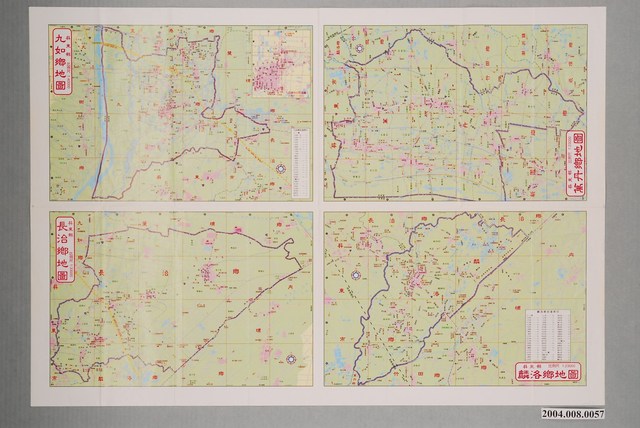 〈屏東市地圖〉,比例尺三萬分一,與〈屏東市街道圖〉,比例尺一萬分一,2001年大輿出版社出版。 〈屏東市地圖〉,繪製範圍為屏東縣屏東市全境;〈屏東市街道圖〉,繪製範圍為屏東市主要市街,功能分類屬市街圖。內容包含行政界線(縣市界、不分區)、行政治所(縣治、區公所)、鐵路、公路與高速高路(附編號、交流道)、名勝古蹟等,無地形描繪。無經緯網格,地圖方向指北。背面為九如、長治、麟洛、萬丹等地市街圖。