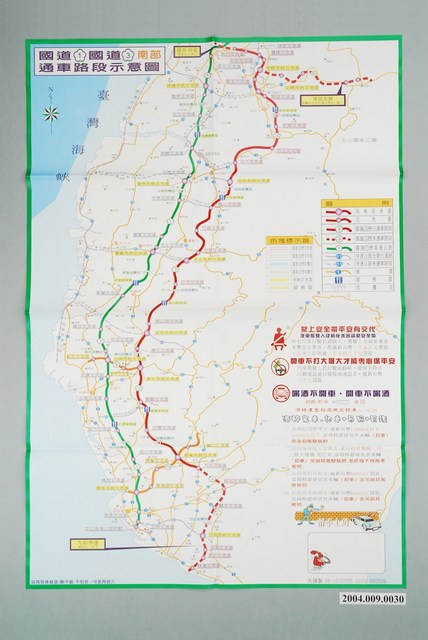 〈國道1號、國道3號通車路段示意圖〉,正反面分別為北部、南部分圖,先鋒製,出版項不詳。約2003年發行。